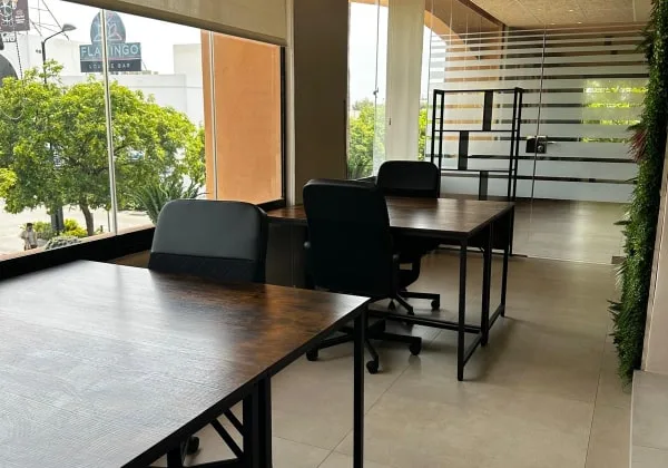 Espacio privado para 4 personas con vistas al exterior y mucha claridad. Un entorno moderno y cómodo que combina privacidad, colaboración y productividad para tu equipo.